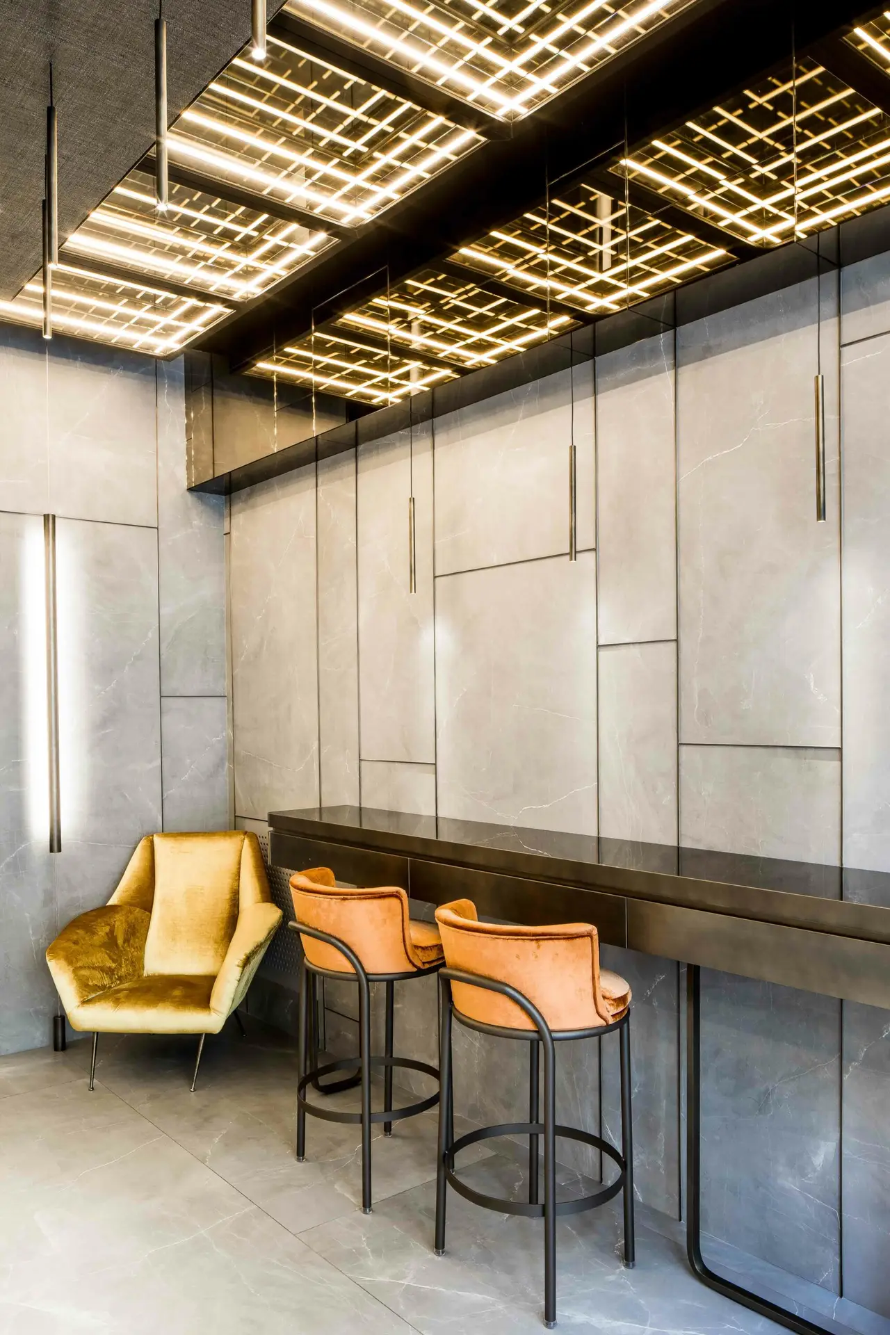 La ceramica, presente in modo determinante, manifesta la propria identità espressiva e funzionale integrandosi con tutto ciò che ha intorno. Il progetto architettonico, di grande qualità, si regge su un’attenta regia, in grado di rispettare le specificità di tutti i materiali.