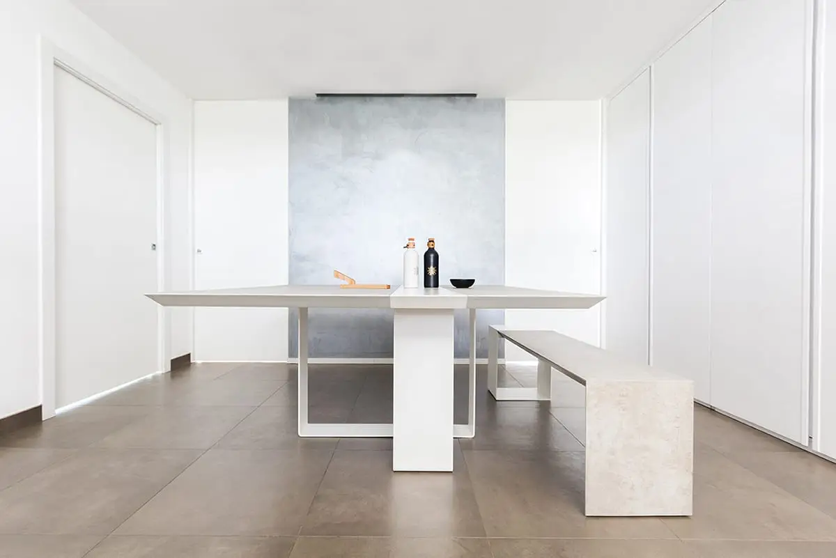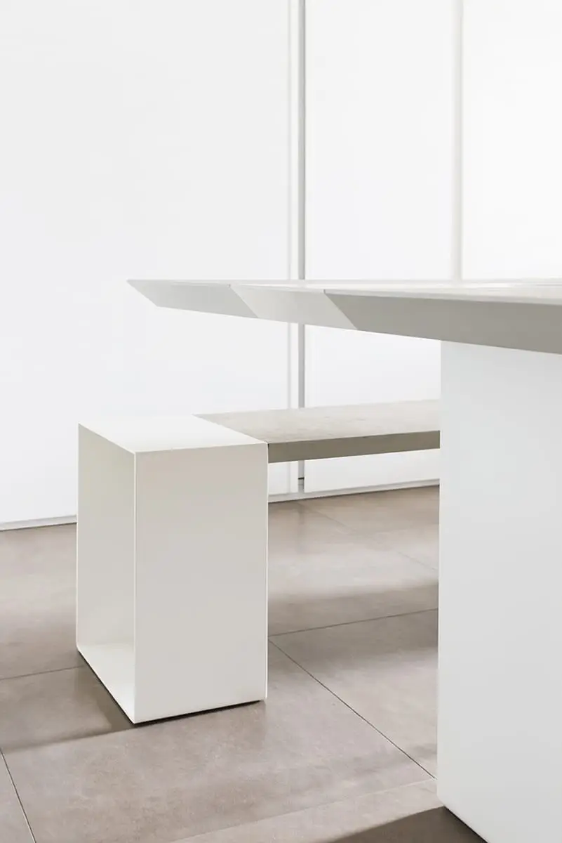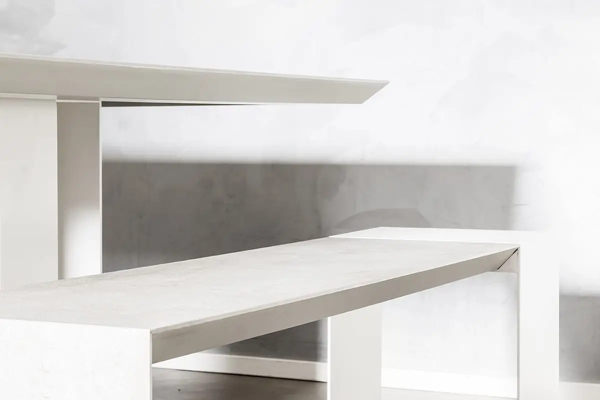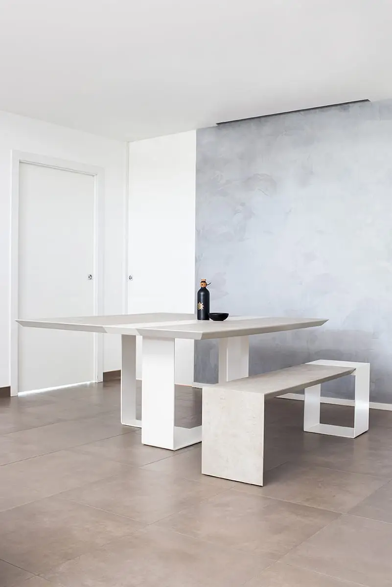 Un progetto di design che è nello stesso tempo un grande esercizio di architettura d’interni. Il Tavolo Ben_NY mantiene un equilibrio e una stabilità funzionale, grazie soprattutto alla presenza di una lastra in gres di grande formato, capace di rispondere correttamente al disegno costruttivo perché resistente all’usura, alle alte temperature e ai detergenti aggressivi. Estetica e semantica coerenti, per un risultato finale altamente sostenibile, che vede l’impiego di una singola lastra ceramica.