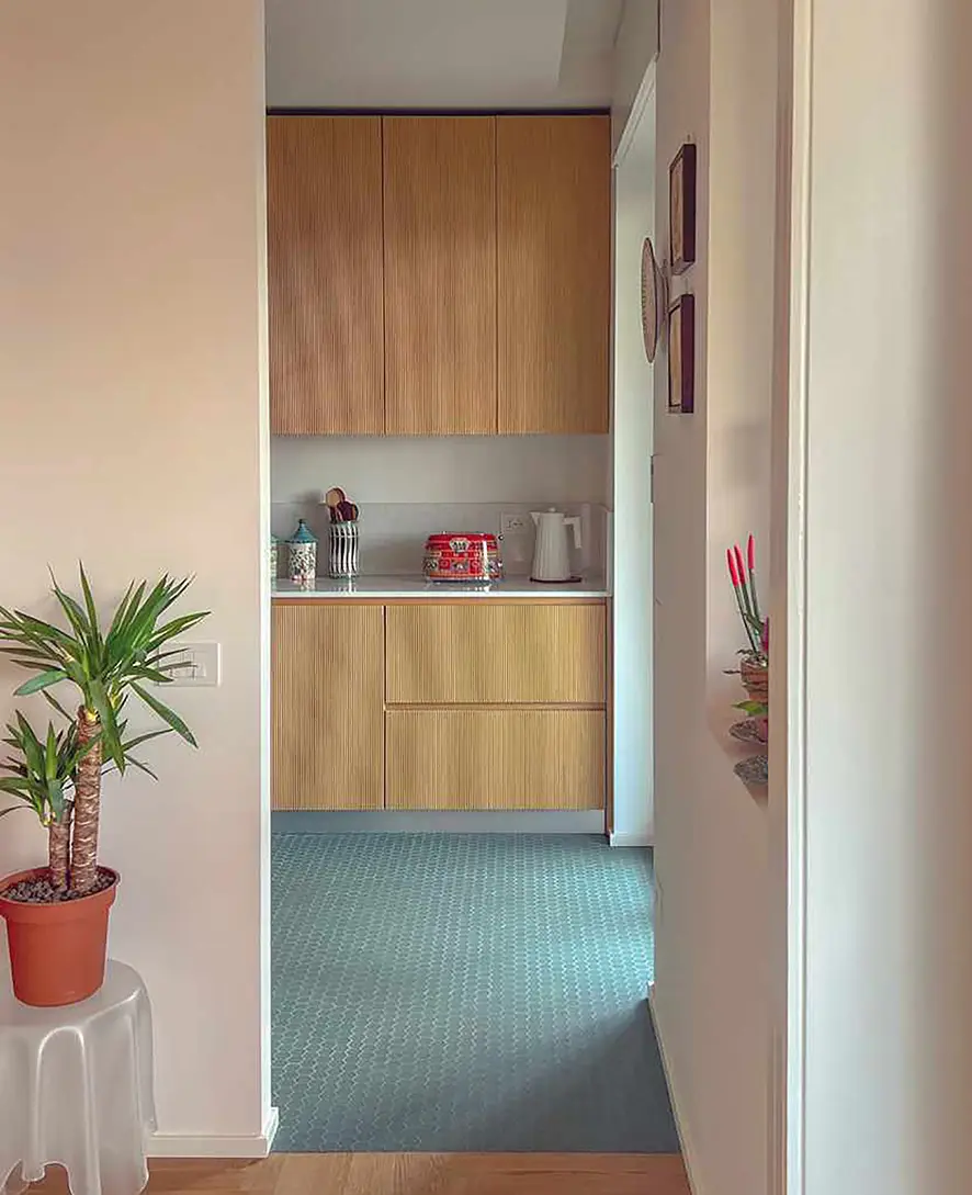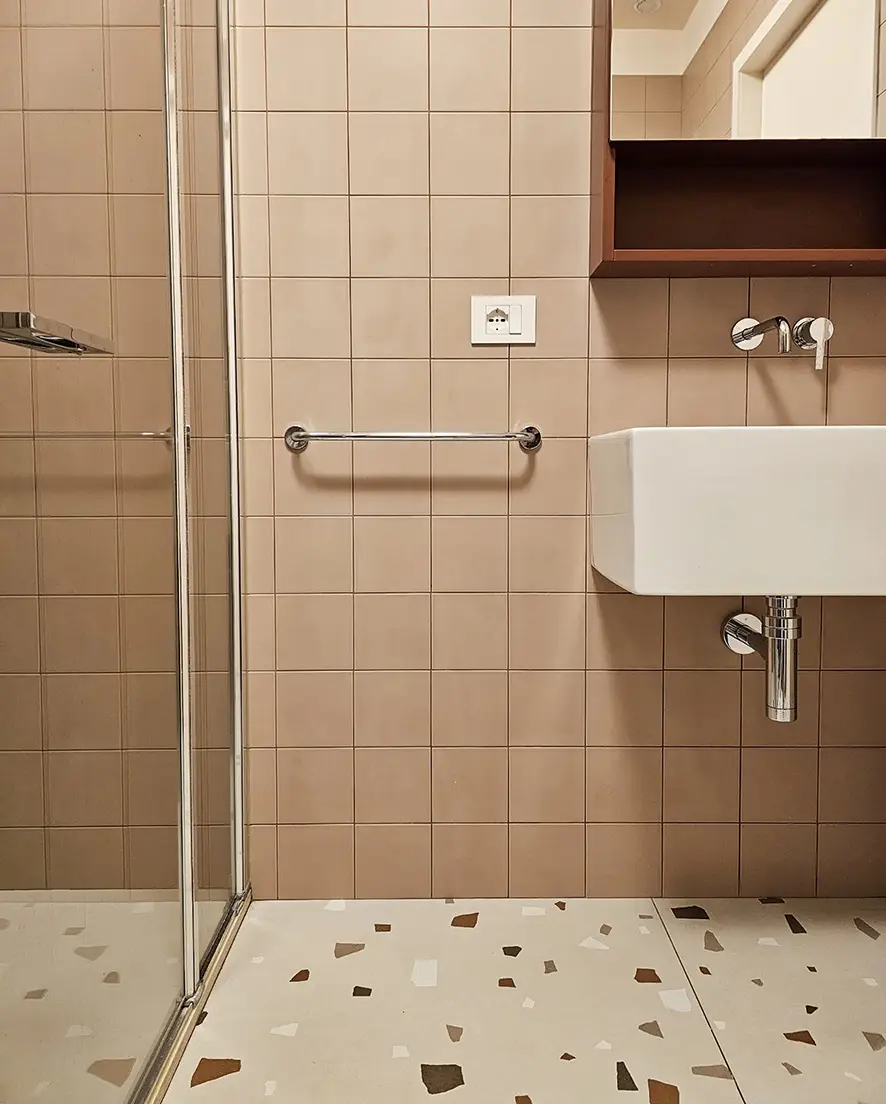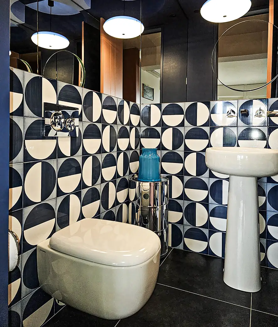 In this renovation of a private home, we find widespread use of Italian ceramics, both in the floor and wall coverings. Almost an art gallery, with countless elegant colour combinations that seem to create a play on shapes and colours. Traditional formats represent a link with the history of Italian ceramics that, however, looks to the future: in fact, technological research has made the use of special three-dimensional pieces possible, alongside the use of iconic tiles such as those designed by Gio Ponti. Even the sanitary wares are strictly made in Italy.