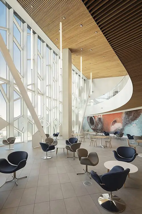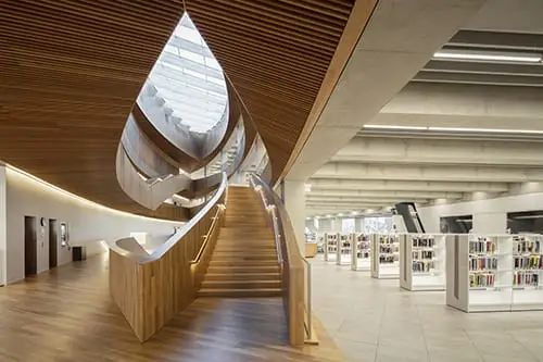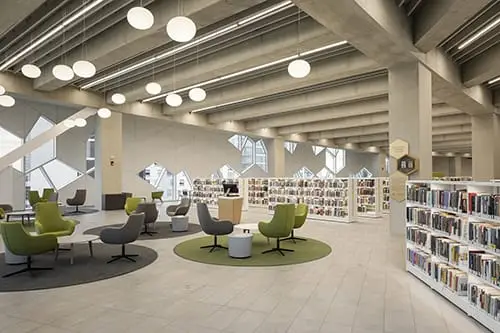 Providing 240,000 sq. ft. of functional, flexible and beautifully designed space, the new Central Library (NCL) is home to a physical collection of 450,000 books, more than 30 free community meeting areas, a performance hall, café, outdoor plazas, a children’s library, dedicated spaces for teens, recording studios, and much more.