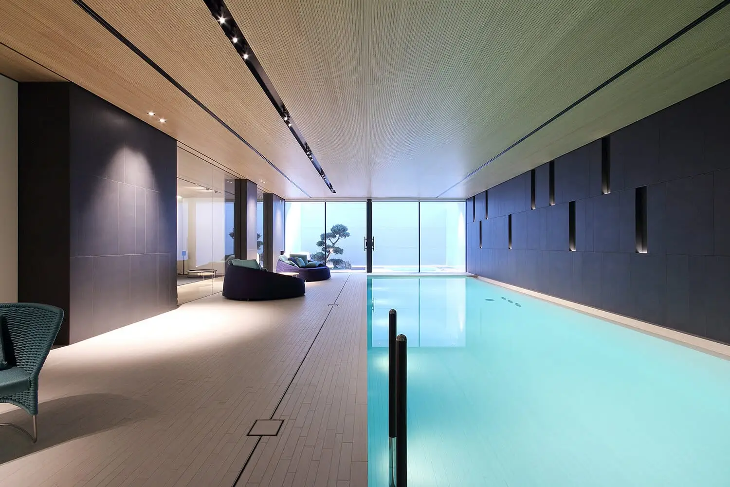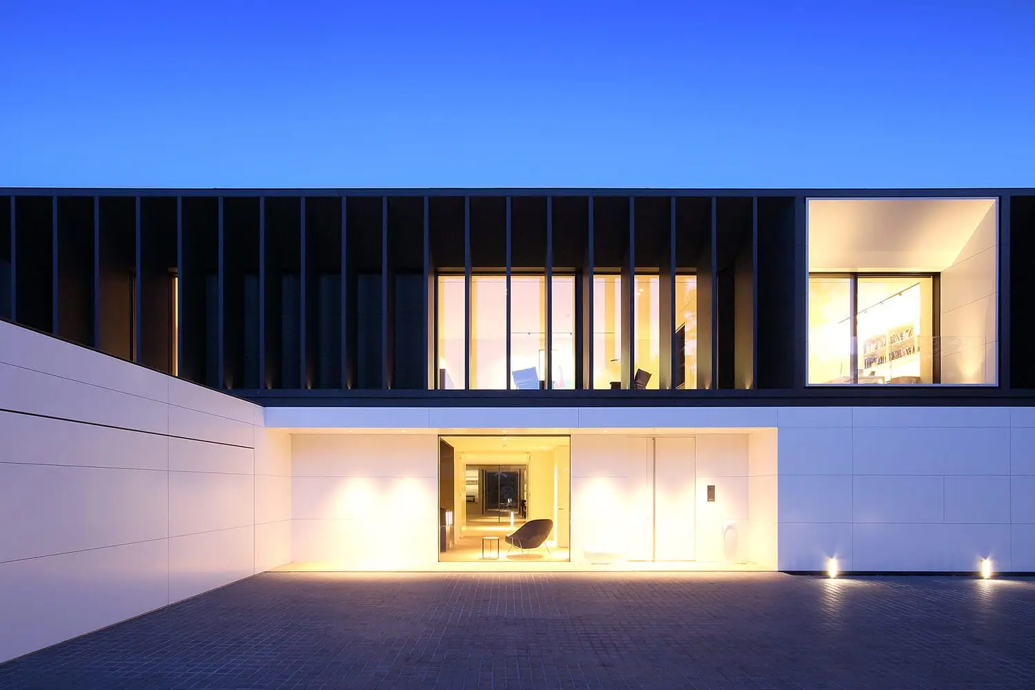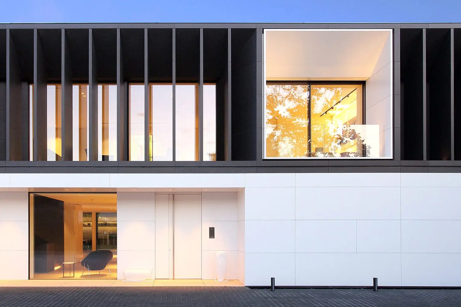 Progetto di grande dimensione, una articolazione di spazi e di connessioni, destinato a una residenza famigliare. Accanto a una serie di materiali di grande efficienza costruttiva, è molto diffusa la ceramica, dalla facciata ventilata al pavimento della piscina, dal pavimento dei bagni a quello del garage fino a locali strettamente di carattere tecnico. Un particolare utilizzo di materiale ceramico italiano che costituisce una scelta produttiva, ma anche una sorta di imprinting estetico del nostro paese.