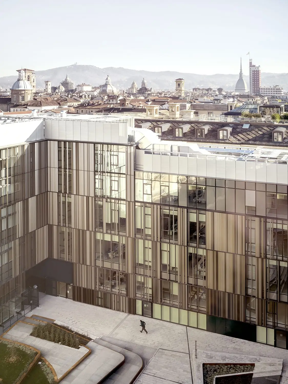 Un grande intervento, all’interno del castrum romano della città di Torino, circa 23.500 metri quadri, dove le lastre in Kerlite utilizzate svolgono un ruolo determinate sia nella composizione degli spazi generali, un grande isolato urbano, sia nella corte interna, a dimostrazione che la superficie di un edificio non è solo la pelle ma rappresenta un elemento strutturale in grado di segnare in modo forte il valore “urbanistico” di un insediamento importante dal punto di vista dei volumi.