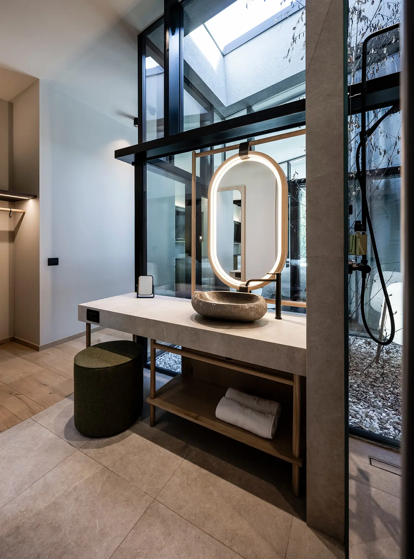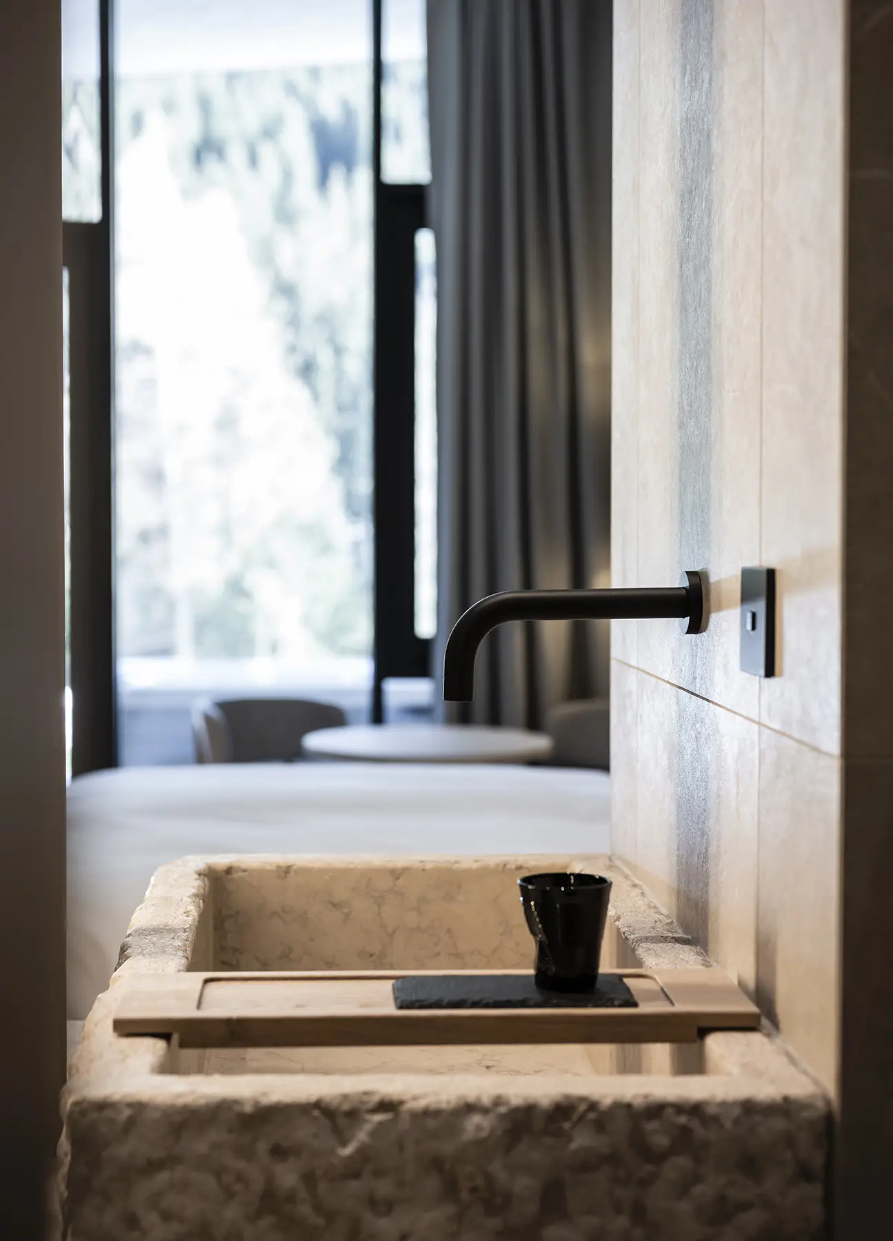 Expanding a mountain hotel without altering the natural balance and landscape, rather creating a greater integration with the surrounding nature: this is the theme of the project realised by NOA for Olympic Spa Hotel, a model of mimetic and sustainable intervention, offering its guests an even more exciting full immersion in the splendid Dolomite scenery. The tiles were used in the rooms, bathrooms, private suite spa and suspended sauna. The colours vary considerably, creating combinations that make the spectacle of the surrounding landscape stand out even more. The extreme versatility of ceramic in terms of colours, formats and sizes makes it ideal for this project. In addition, its high resistance to chemicals, durability, hygiene and non-slip properties make it particularly suitable for wellness areas, where water is always present.