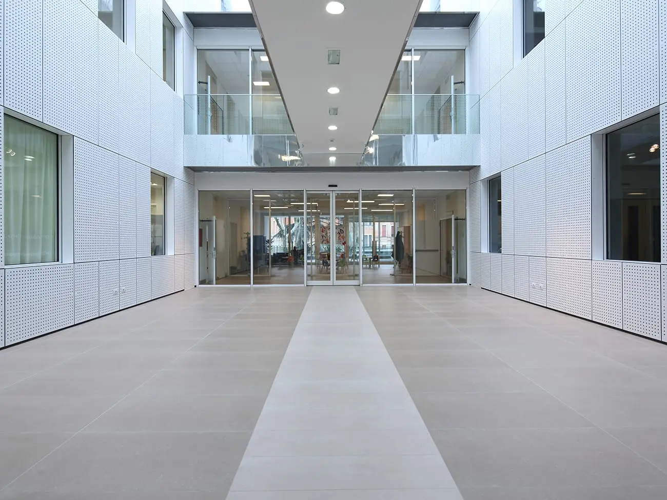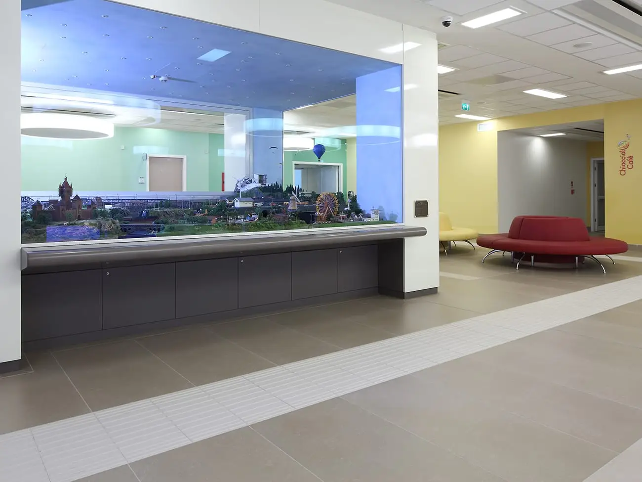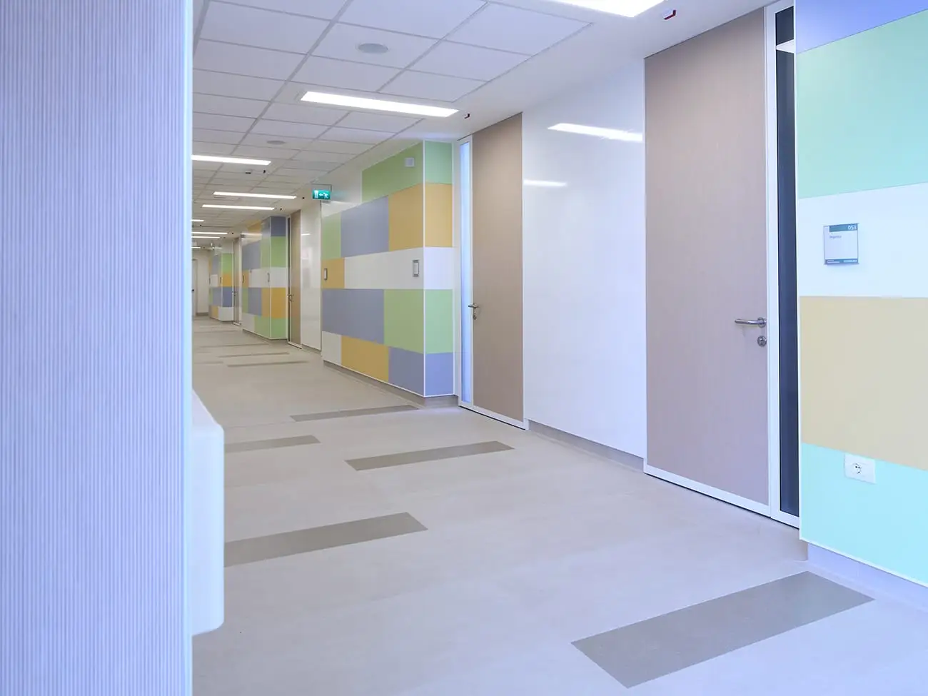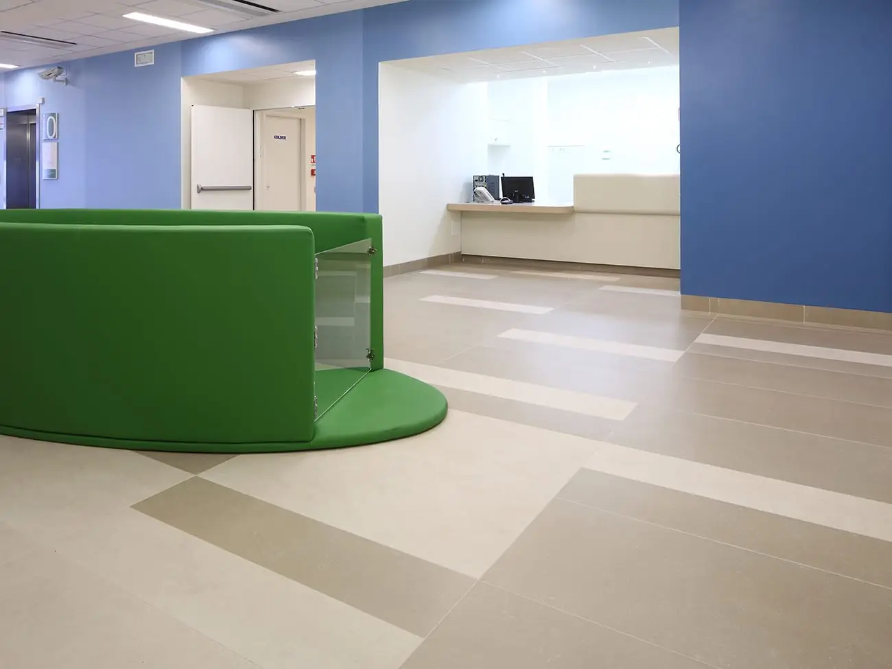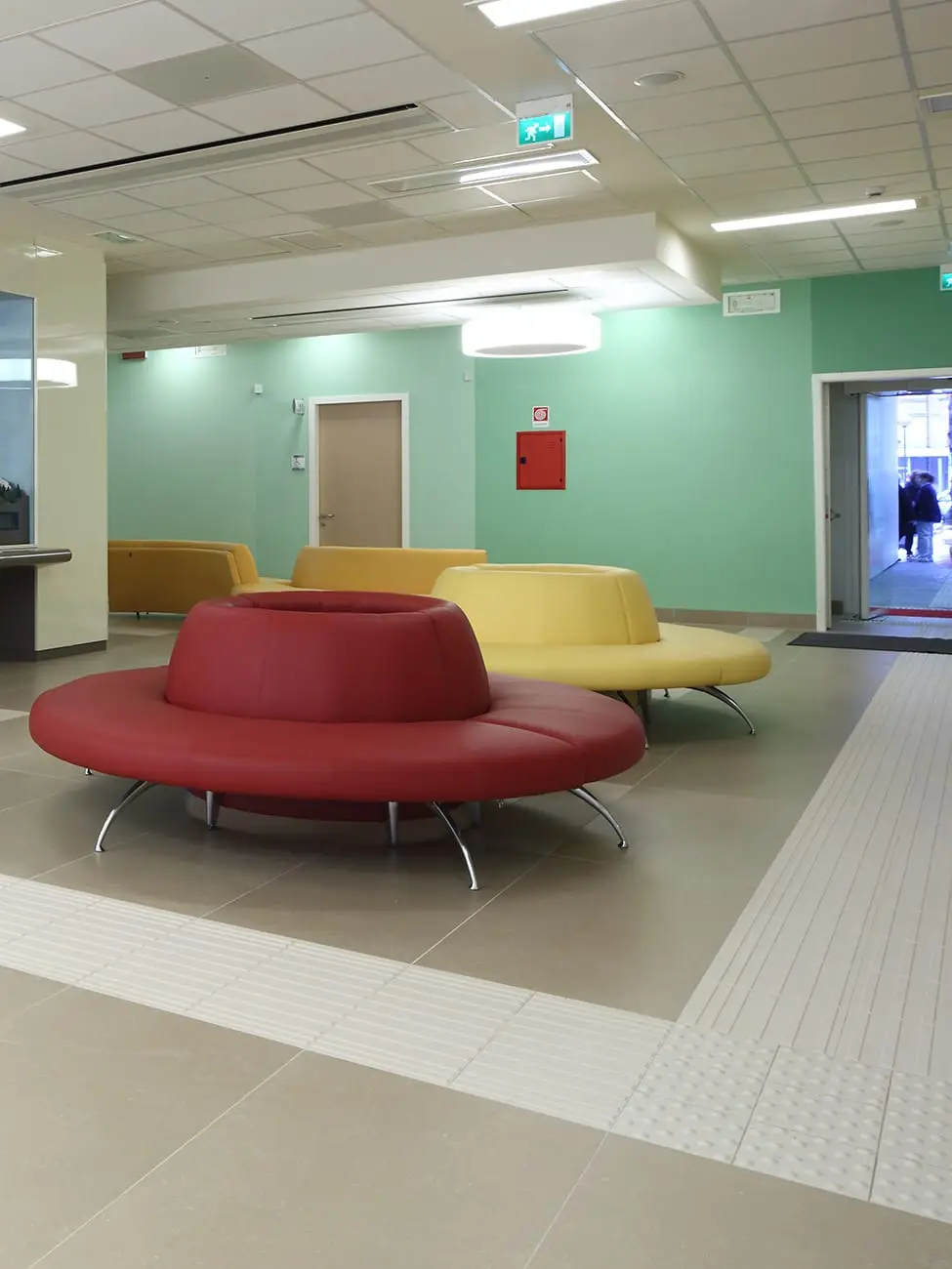 Si potrebbe affermare che il progetto abbia messo al centro il materiale ceramico, declinando al meglio tutte le sue qualità, prestazionali, estetiche e costruttive, al servizio di un luogo di cura particolare: un ospedale per bambini. Ecco allora che l’umanizzazione dell’architettura sanitaria, attraverso la soluzione di problemi come l’orientamento, la luce, la mobilità, la confidenza relazionale, la rassicurazione, la privacy e la socializzazione, trova una soluzione sia nell’organizzazione degli spazi sia utilizzando tutte le potenzialità, espressive e funzionali della ceramica. In particolare, per garantire la massima igienizzazione degli ambienti, è stato progettato, nei raccordi tra pavimento e le pareti, un apposito elemento di “sguscia”,a dimostrazione che la flessibilità del materiale è in grado di risolvere aspetti costruttivi, rispettando l’armonia del linguaggio espressivo.