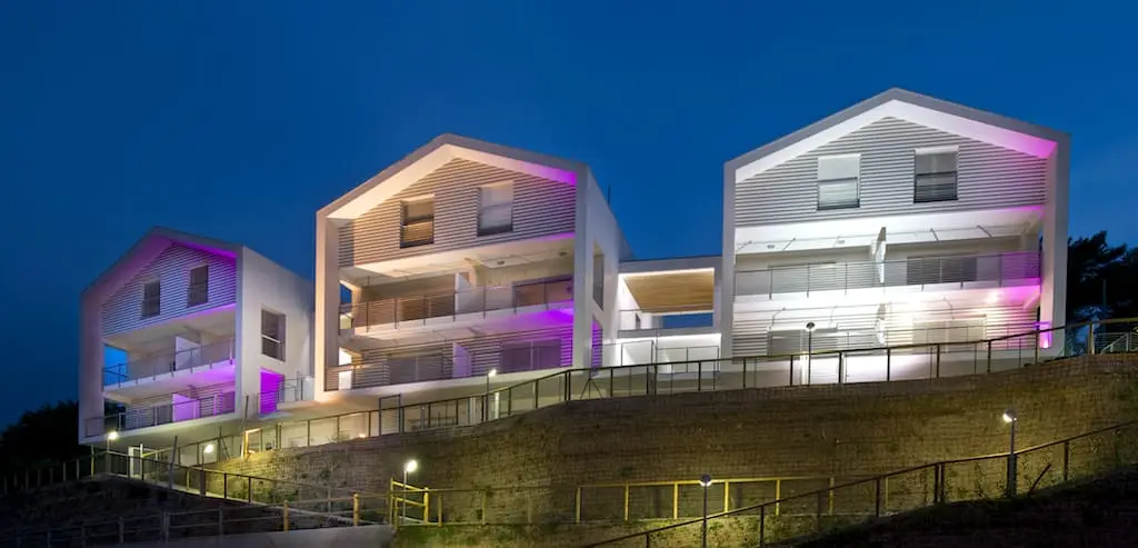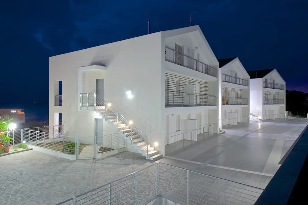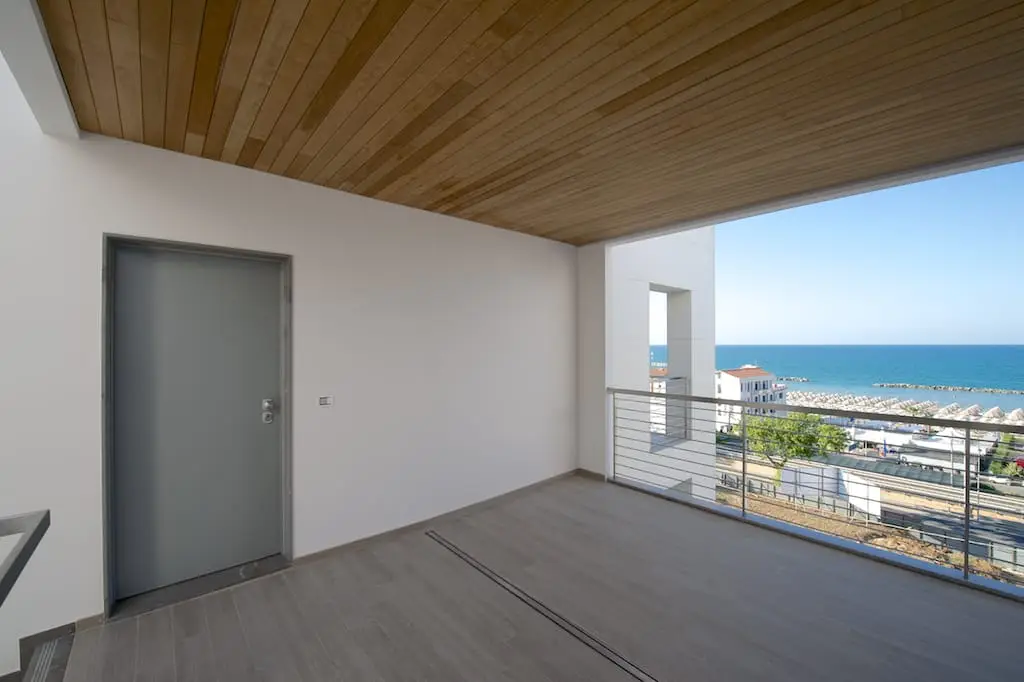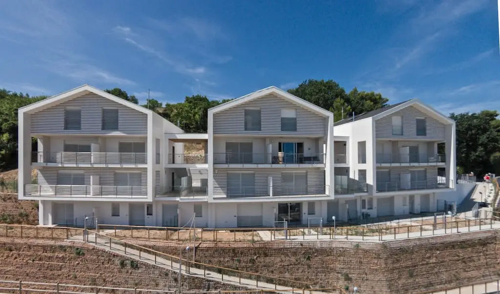 L’intervento progettuale, situato tra la statale nazionale adriatica e la ferrovia, ha individuato soluzioni intelligenti e di una particolare qualità compositiva, che lo distinguono immediatamente dal contesto anonimo che lo circonda. La scelta del materiale ceramico per i rivestimenti esterni e per la pavimentazione retrostante contribuisce in modo sostanziale ad un’identità costruttiva di grande qualità.