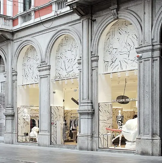 Il progetto “Silvian Heach Flagship Store” di Milano, dello studio Fabio Caselli Design, dimostra che le possibilità espressive del materiale ceramico non hanno limiti. In questo caso la ceramica di Ornamenta diventa l’assoluta protagonista di un rivestimento senza soluzioni di continuità dove grafiche, secondo l’estetica “cartoon”, costruiscono una narrazione quasi “urbana” pur nel rispetto delle tipologie merceologiche che il prodotto rappresenta. Un materiale che dialoga con tutti gli spazi espositivi dello store, diventando la parte per il tutto.
