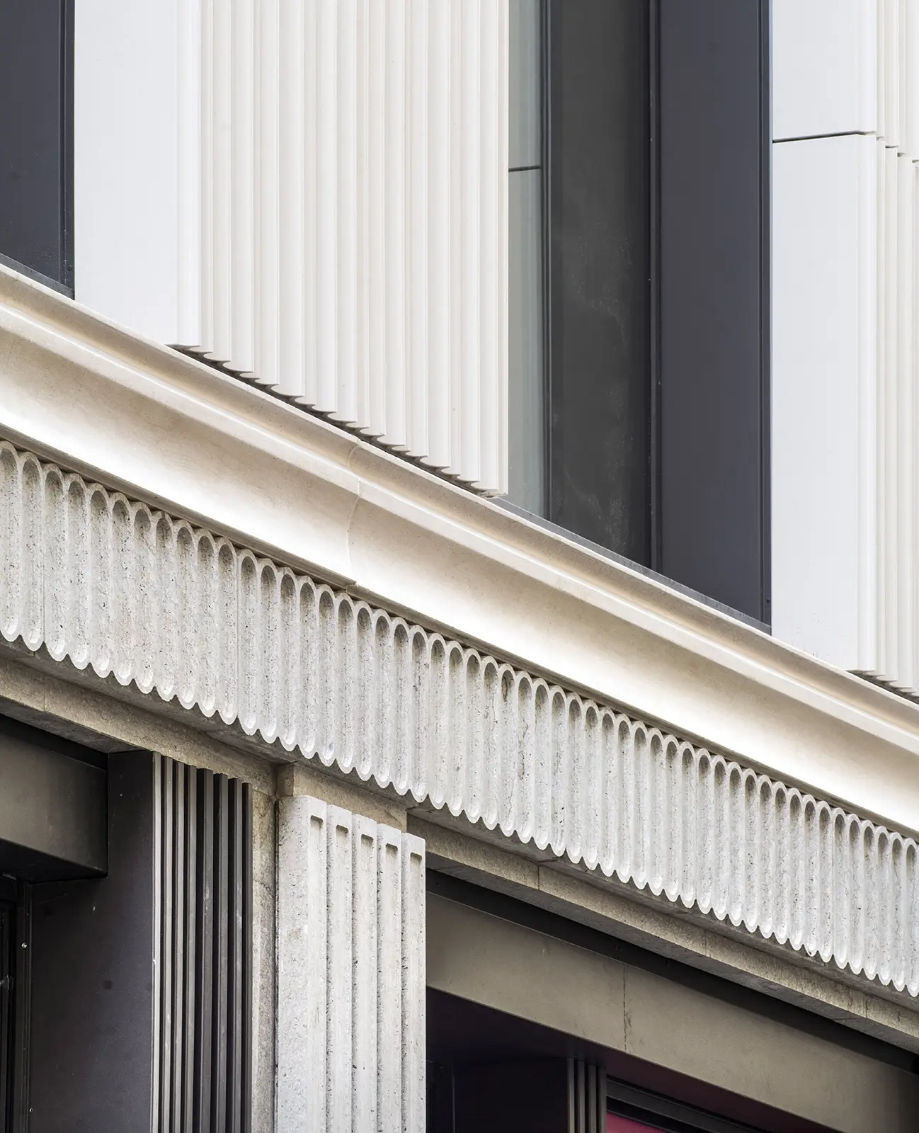 This regeneration project stems from the need to create new commercial and office space in a 1950s building. It is a gentle and environmentally friendly renovation. The conservative intervention and the use of materials coming from the surrounding area (such as tiles from Emilia Romagna) have allowed a significant reduction in energy consumption, thus meeting the highest standards of sustainability. The three-dimensional cladding presents itself clearly as an additional, non-structural layer, almost like a curtain. Further, it picks up on the details of the original architecture on the lower level. in this way, the combination of new and old gives the building a ‘tailor-made suit’ that fits perfectly into the surrounding urban context. Persuasively, almost touchingly, the entire project reminds us that cities, together with their artifacts, are palimpsests in which history is both legible and palpable.