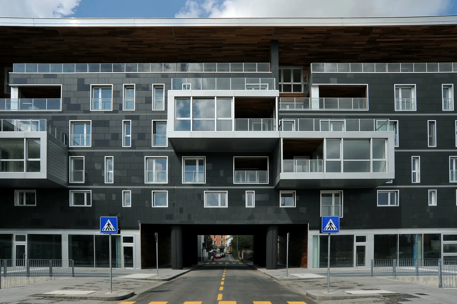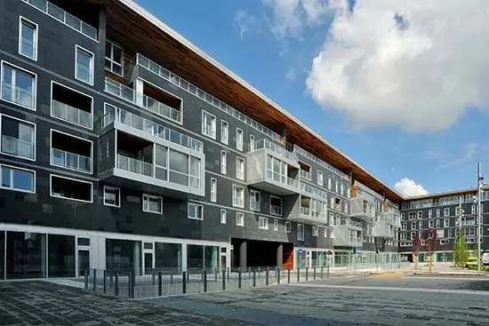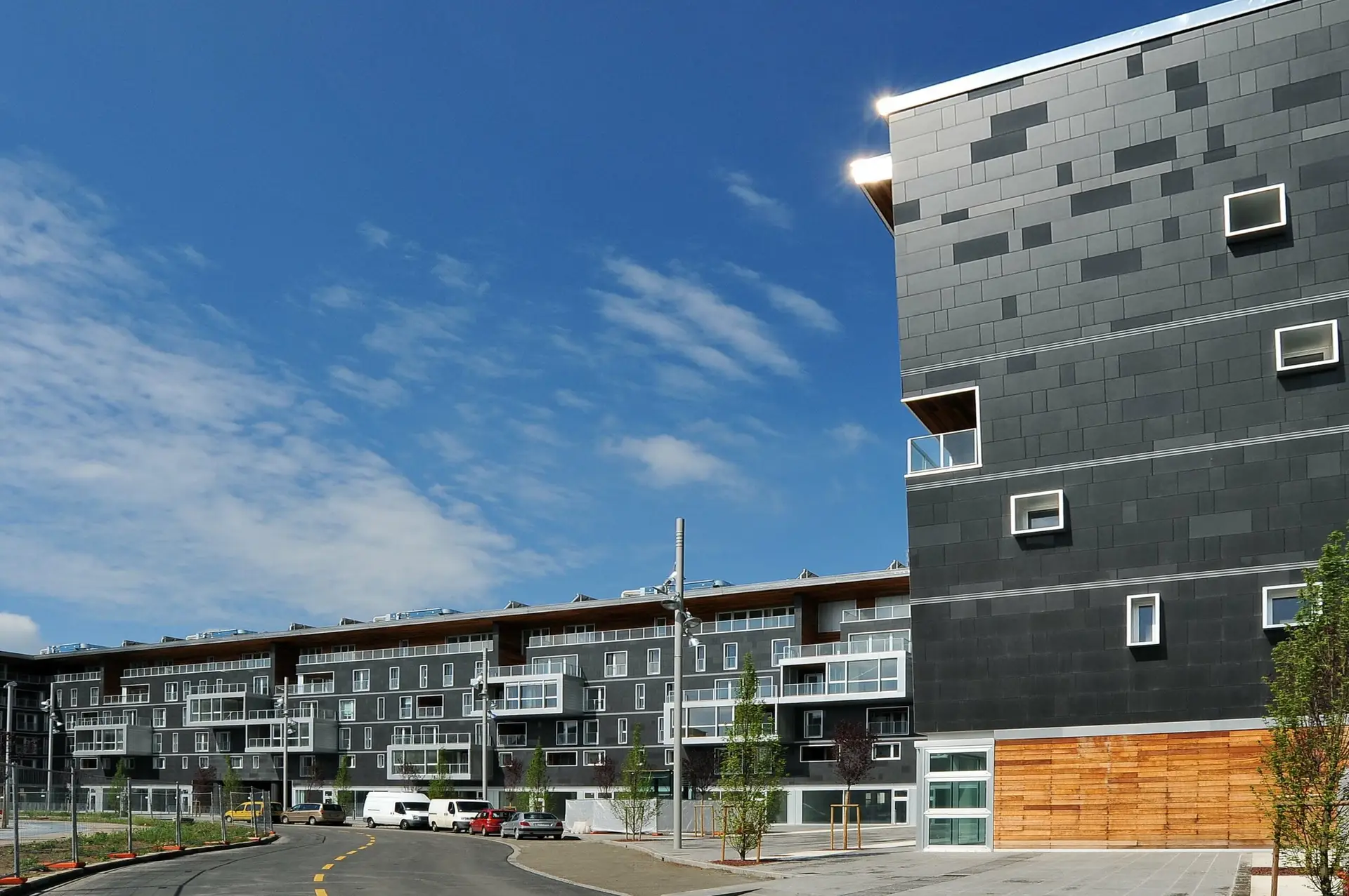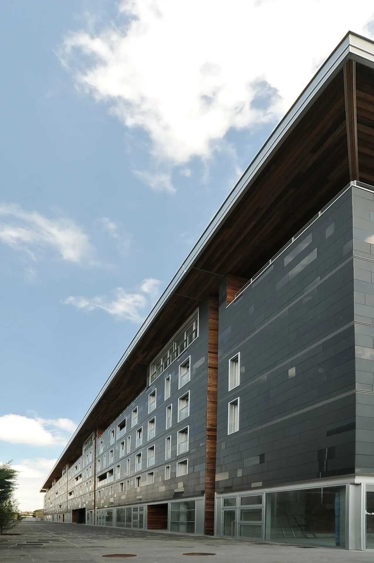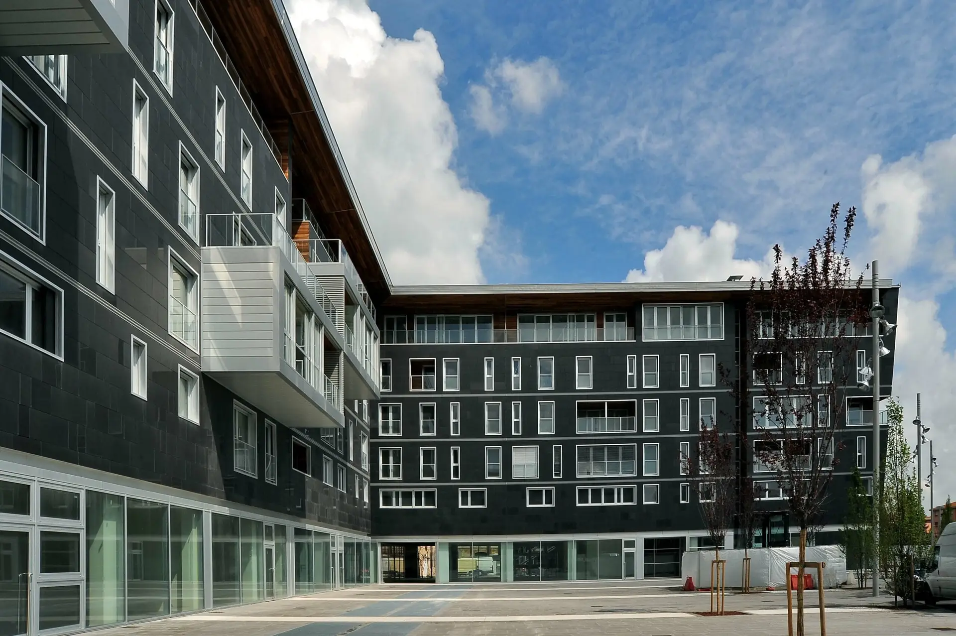 L’intervento fa parte di un Masterplan urbanistico dello studio MBM di Barcellona; l’edificio premiato rappresenta l’insediamento architettonico di maggiore dimensione. Abitazioni che dialogano con spazi pubblici e attività commerciali, il tutto attraverso un linguaggio compositivo di pieni e di vuoti, di piani orizzontali e verticali, dove la ceramica, costituisce l’elemento caratterizzante, sia sul piano estetico sia per quanto riguarda gli aspetti di sostenibilità. La facciata ventilata, infatti, rivestita in grès porcellanato, garantisce un particolare scambio termico sia in estate che in inverno. La qualità generale di tutto il progetto mostra, con coerenza e sapienza espressiva, cosa significa utilizzare in modo intelligente, il materiale ceramico in architettura.